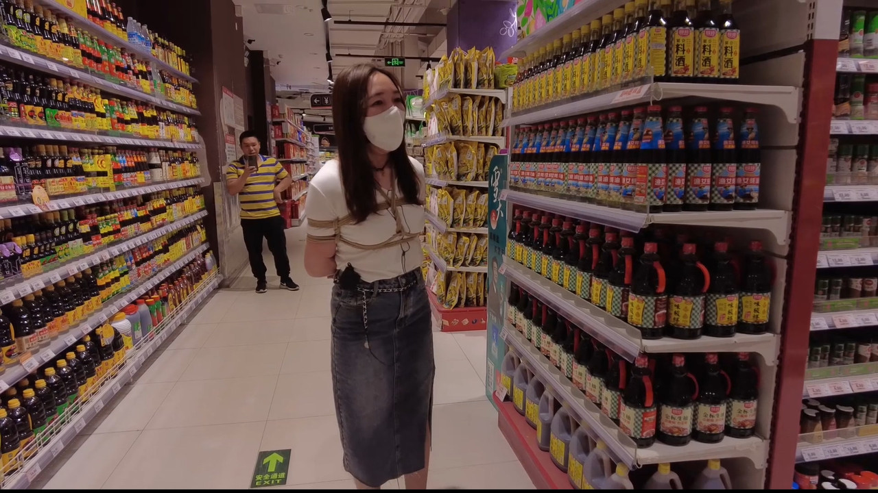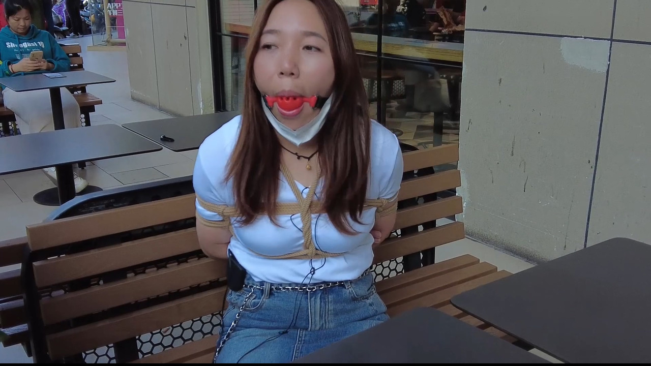 rope bondage shibari ballgag vibrator public outdoor supermarket