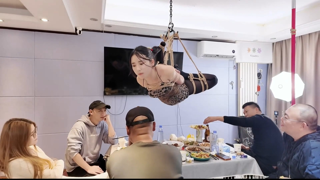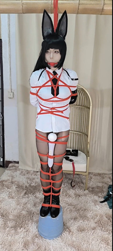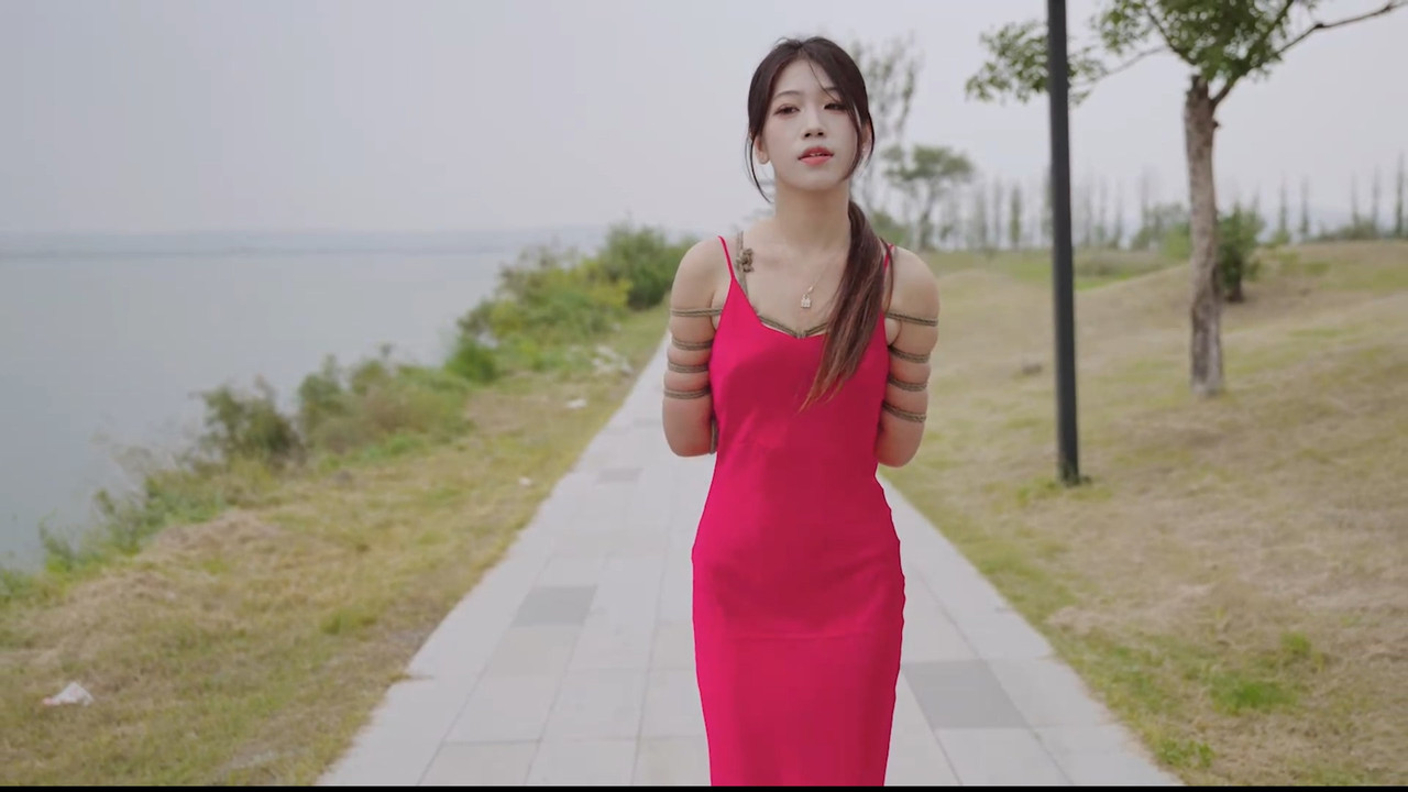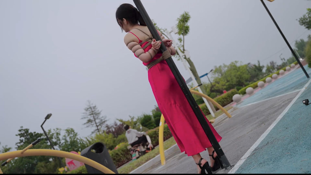 rope bondage shibari public outdoor dress heels